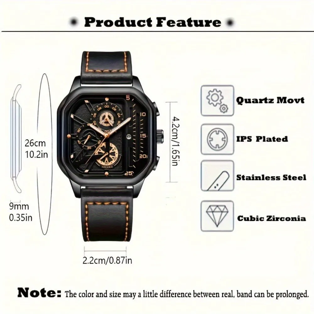 • Material Durável:Feito de couro PU e liga de alta qualidade, o relógio é durável e pode suportar o desgaste diário.